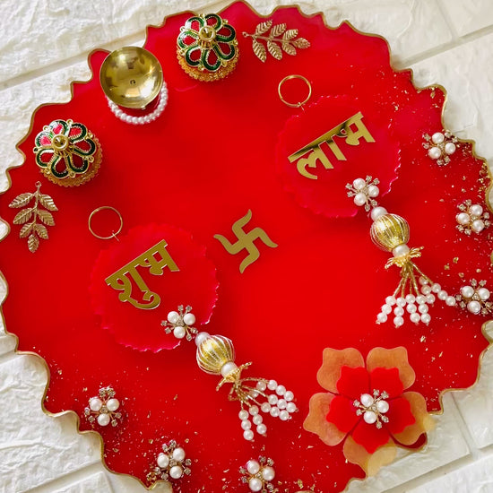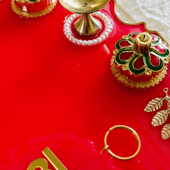 A perfect blend of tradition and elegance, this handcrafted resin pooja thali is designed to enhance your festive rituals and daily prayers. With its spacious 12-inch size, it provides ample space to arrange diyas, roli, chawal, flowers, and sweets beautifully. The glossy resin finish adds a touch of modern charm while keeping the essence of devotion alive.